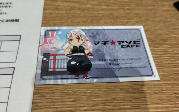席に着くと名刺代わりのマチアソビカフェショップカードが…